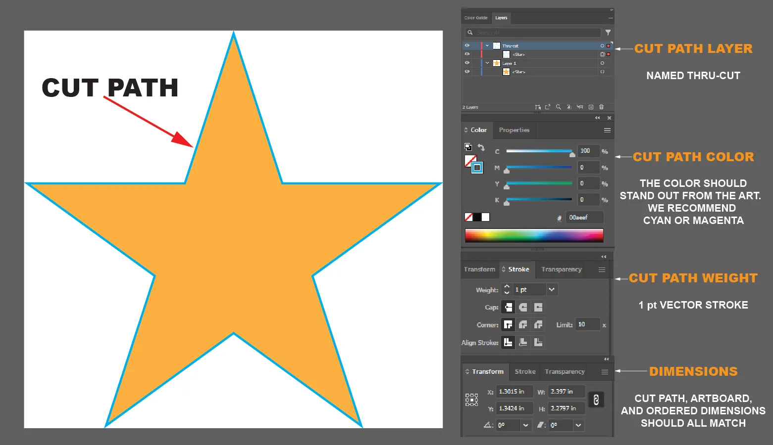 • Proofs are required to be sent for approval for altered cut paths at no additional cost.