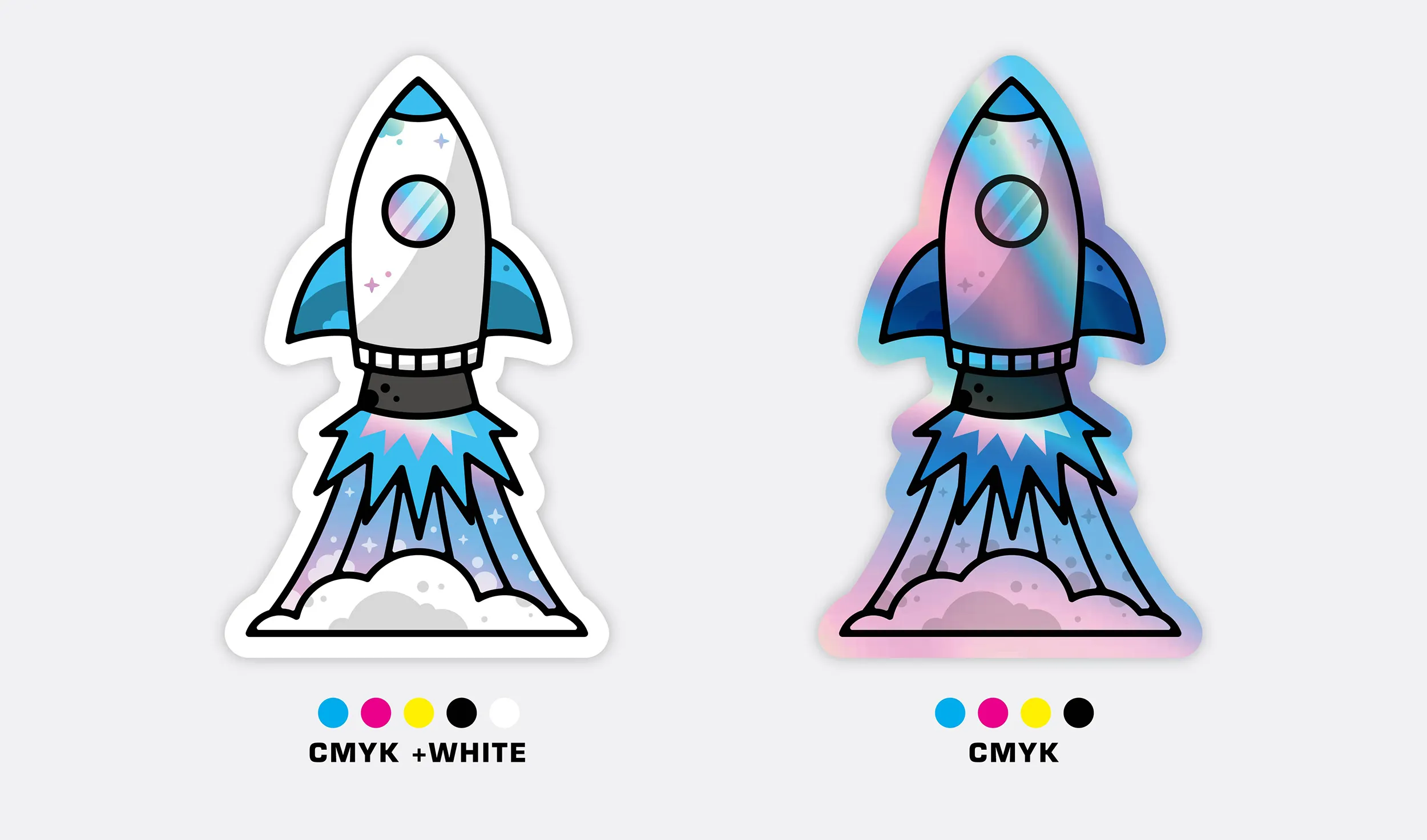 There are two options when printing on holographic vinyl: CMYK + Spot White or CMYK. Follow the steps below to create your desired effect.