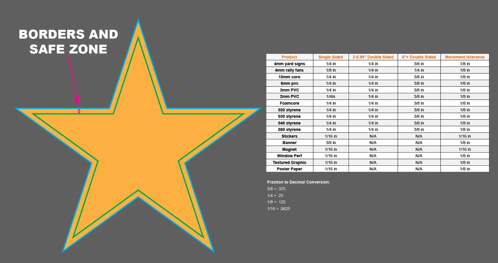 • Borders at the edge of double-sided signs must be 3/8” or thicker not including bleed.