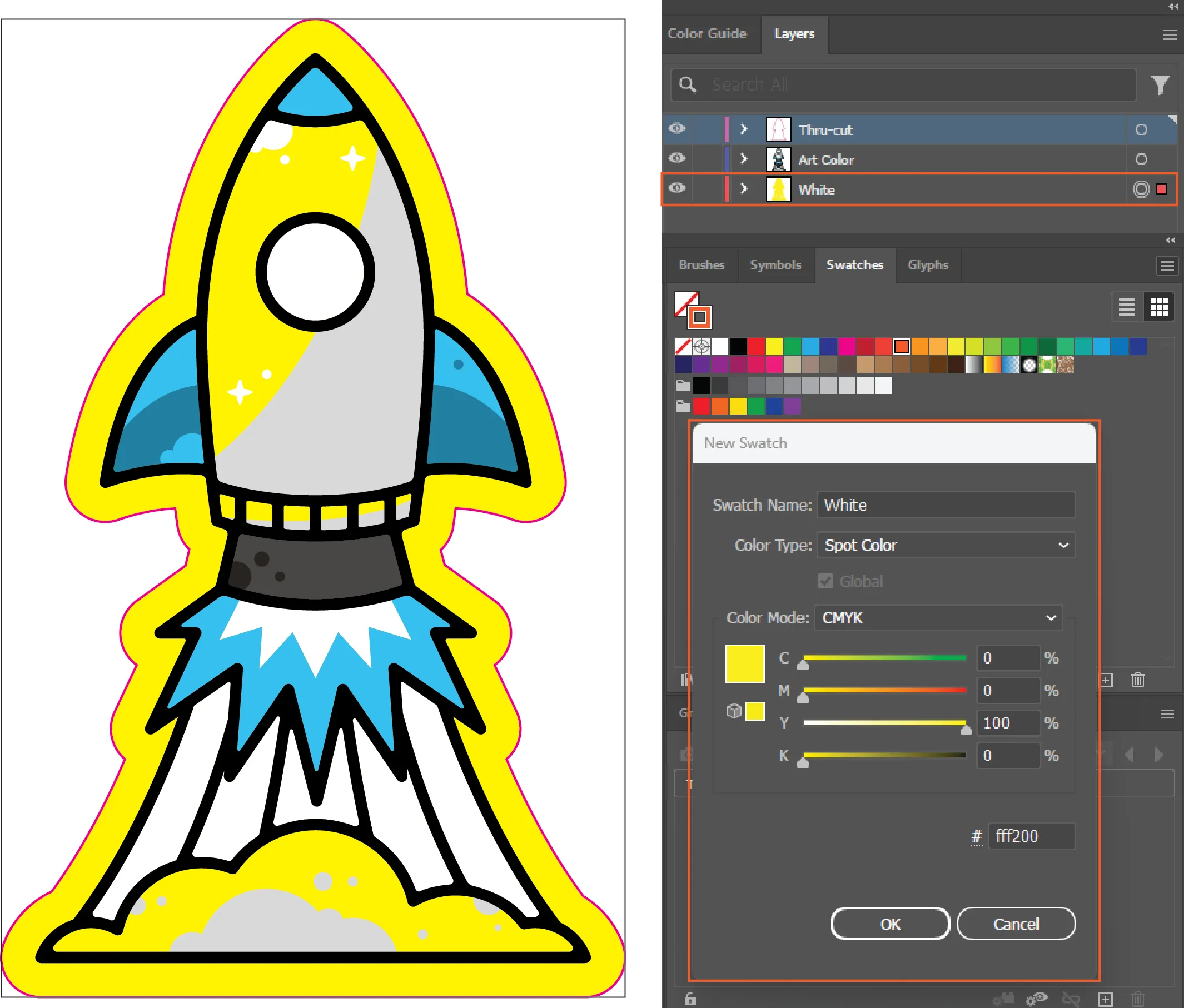 • Clearly label your Spot White layer as “Spot White” and your CMYK layer as “CMYK”.