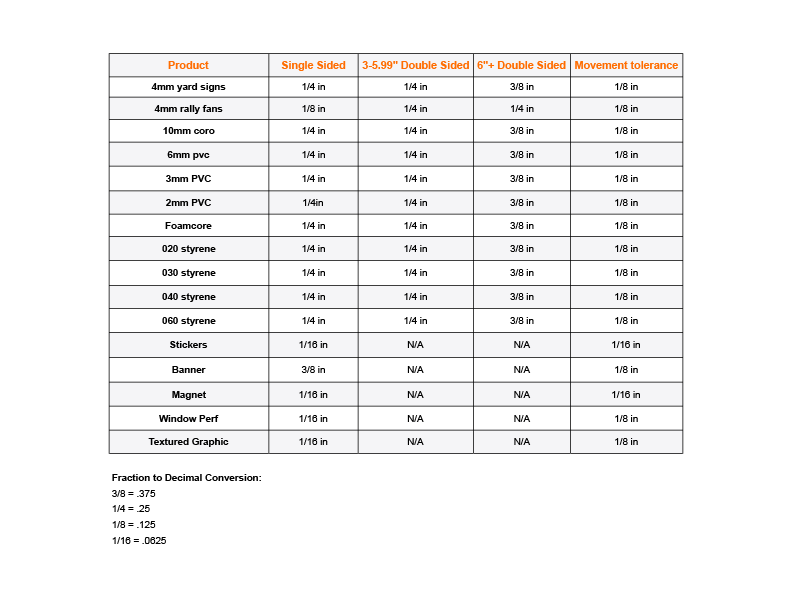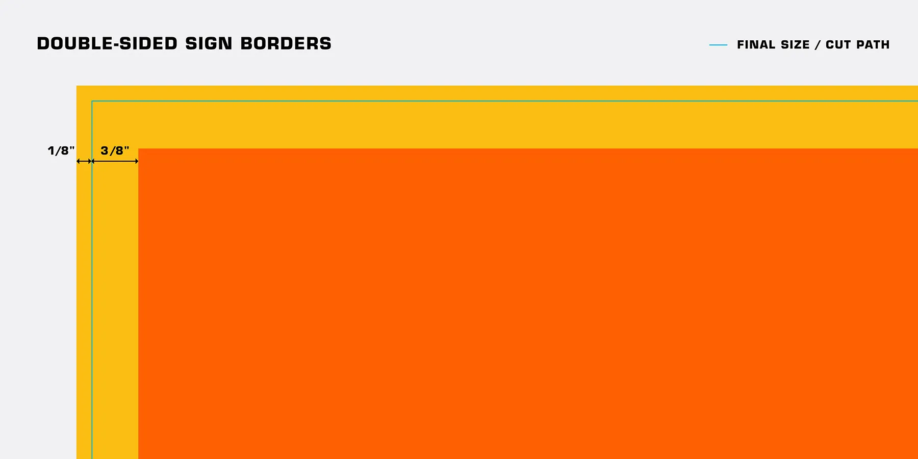 - Borders at the edge of double-sided signs must be 3/8” or thicker not including bleed.