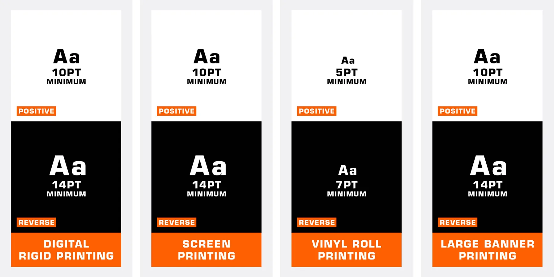 - Large Format Banners Minimum type size of 10pt for positive type and 14pt for reverse type